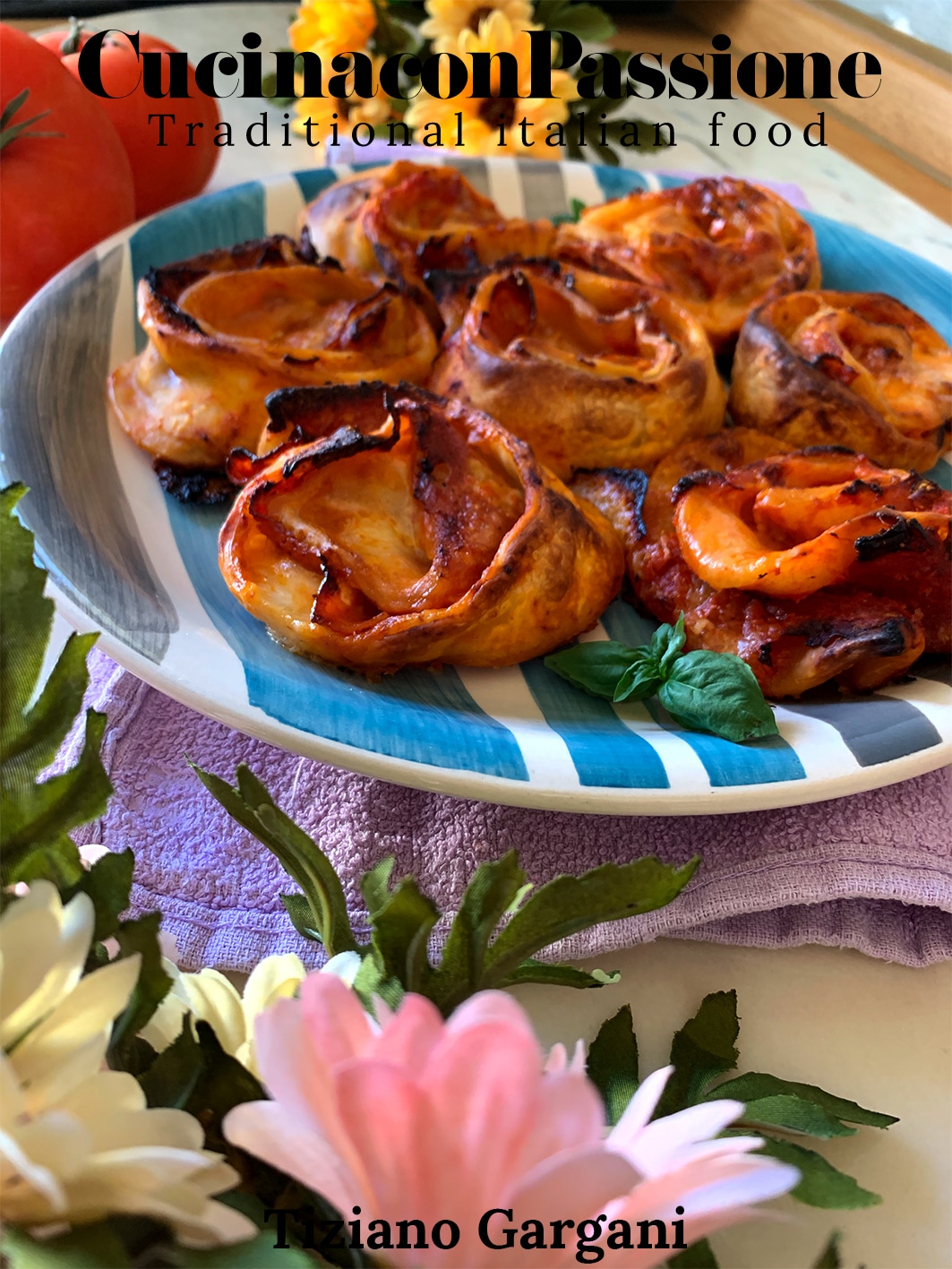 - Una volta che il nostro fantastico pomodoro sarà su tutta la superficie della pizza condiamola con un filo di olio, basilico, sale, un pizzichino di pepe, dopodiché aggiungiamoci il salame e la mozzarella precedentemente tagliata a fettine non molto sottili e cominciamo ad arrotolare il tutto stando attenti a non perdervi per strada qualche ingrediente 🤦🏻♂️ scherzi a parte arrotoliamo il tutto per bene (mentre lo arrotoli assicurati di stringerlo ad ogni giro) e tagliamo a fettine di circa un centimetro e mezzo l'uno dall'altro ripetiamo l'operazione fin quando non abbiamo finito.