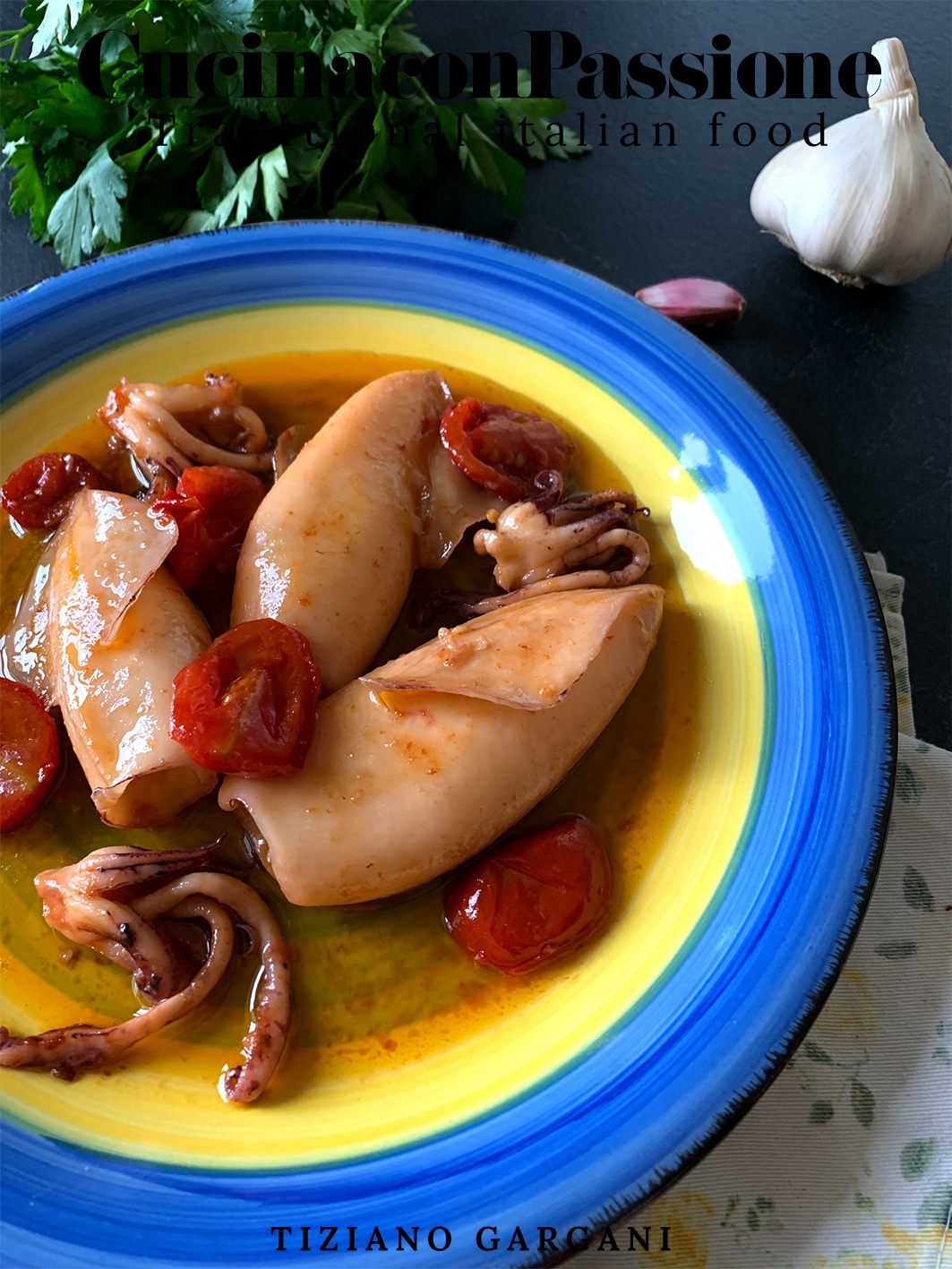 Il vecchio marinaio è il nome di questo meraviglioso piatto, mentre andavo al supermercato per comprare tutto quello che mi serviva mi venivano in mente delle scene di un vecchio marinaio con la barba ormai divenuta bianca nella pace più assoluta cullato dalle onde del mare su una barca, confinato solo dalla sua immaginazione che aspettava di tirare sù una corda ormai usurata. La ricetta di oggi sono dei calamari alla marinara è un piatto molto facile da preparare ma che richiede molta pazienza in quanto il calamaro può essere cucinato in due modi il primo è con una cottura veloce quindi alla piastra, il secondo è una cottura molto più lunga cosi da rendere morbide le carni. Per preparare questa ricetta occorrono dei calamari i più piccoli che riuscite a trovare, dei pomodorini ciliegia (l’importante è che siano freschi), alici e nel caso volessimo osare possiamo aggiungere delle olive taggiasche all’olio. Per rimare in tema vi propongo anche un dolce che personalmente adoro molto veloce da preparare, monsone sono dei piccoli biscotti morbidi all’avena con gocce di cioccolato buonissimi.